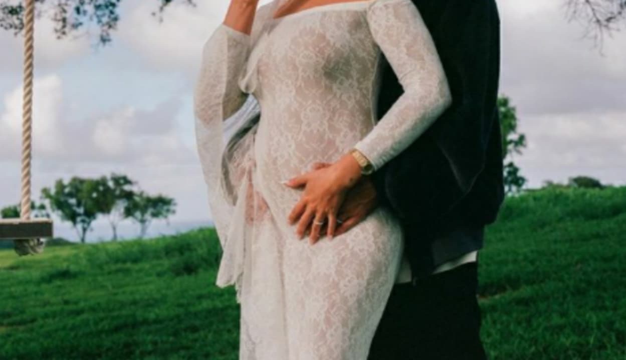 Unggahan tersebut jelas menampakkan baby bump yang sudah jadi bukti bahwa Hailey sedang mengandung anak mereka.